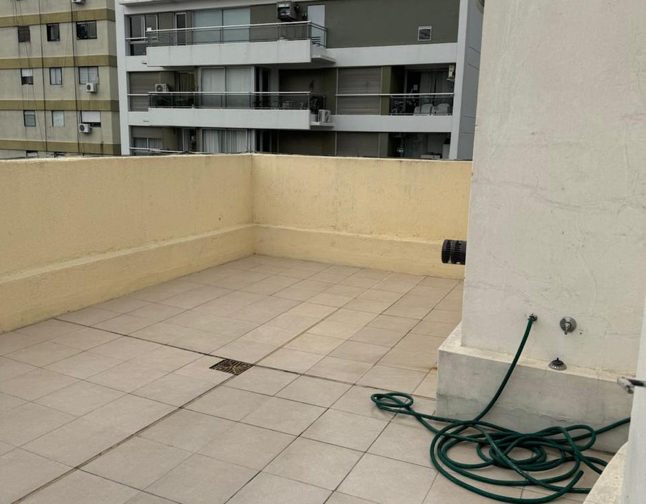 SEMIPISO CON COCHERA Living comedor a balcón, 2 baños completos (1 con jacuzzi), cocina c/conexión lavarropas, 2 dormitorios (1 suite c/vestidor). Pisos de parquet plastificados, puerta blindada. Balcón con protección de red y rejas, 3 aires acondicionados split frio-calor. Parrilla y Solárium en terraza. Muy luminoso.
